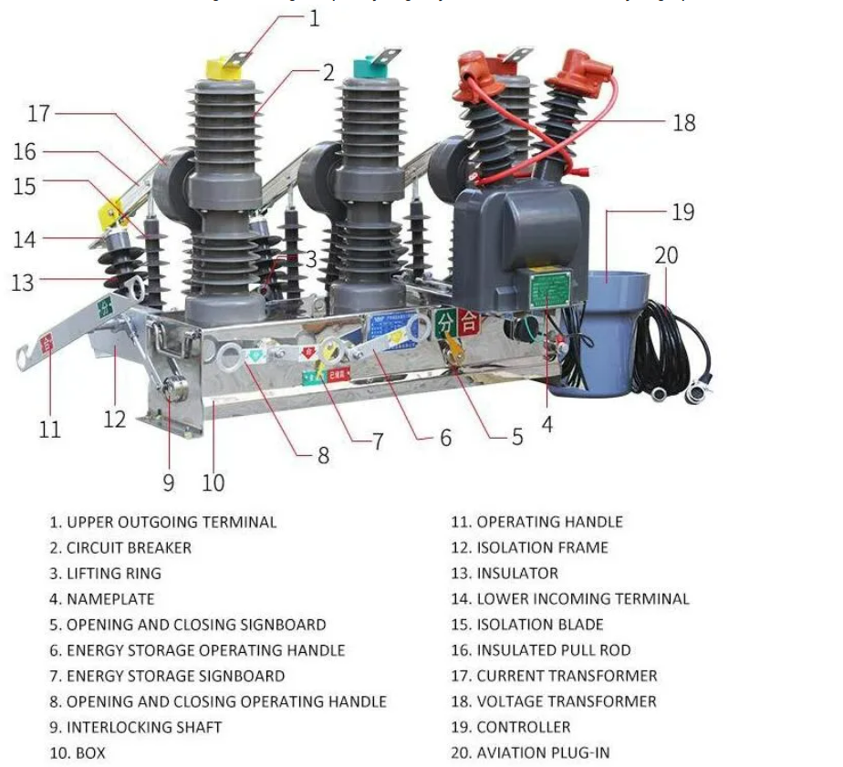 Ini dapat dilengkapi dengan mekanisme operasi pegas, yang memiliki fungsi dasar seperti melanggar dan menutup arus beban, arus berlebih dan arus sirkuit pendek. Ini adalah tipe dasar seri ZW32-24. Pemutus sirkuit dan sakelar isolasi dapat digabungkan untuk membentuk "pemutus sirkuit gabungan" (selanjutnya disebut sebagai "pemutus sirkuit gabungan") dengan fraktur yang berbeda. Pada sakelar isolasi, pengguna dapat memilih untuk menggunakan selubung isolasi karet silikon, yang memiliki karakteristik hujan, salju, pasir dan anti-polusi dan korosi, dan secara efektif dapat menghindari pembekuan dan oksidasi sakelar isolasi.