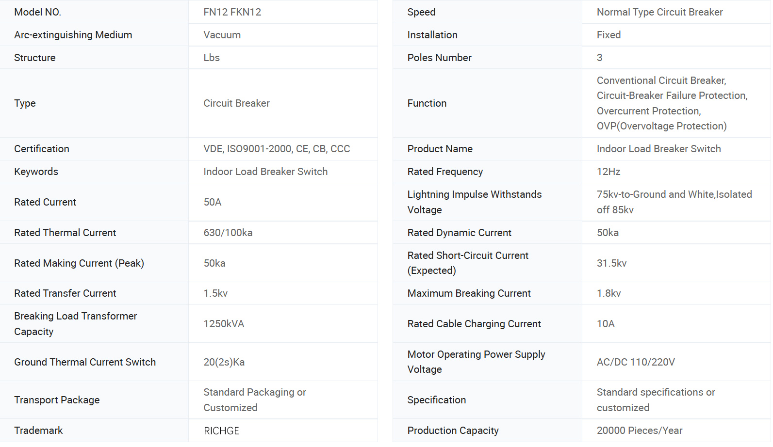 FKN12-12R.D/100-31.5 Jenis Kombinasi Fusi beban tegangan tinggi indoor adalah switchgear tegangan tinggi dalam ruangan yang menggabungkan sakelar beban FKN12-12D dan port xrnt-12 arus tegangan tinggi membatasi sekering. Ini dapat dengan andal memecah arus apa pun hingga arus hubung singkat: sakelar beban memecah arus kerja, sekering memecah arus hubung singkat, dan bersama-sama memecah arus berlebih antara arus kerja dan arus hubung singkat penuh, dan sekering membuat sakelar beban terbuka.