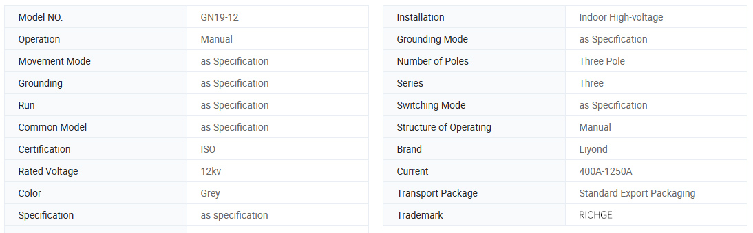 GN19-12, 12C seri sakelar pemutusan tegangan tinggi dalam ruangan (selanjutnya disebut sebagai sakelar pemutusan) adalah perangkat indoor dengan tegangan pengenal 12kV, AC 6 fase tiga fase, dan digunakan untuk membagi dan menutup sirkuit ketika ada tegangan dan tidak ada beban.