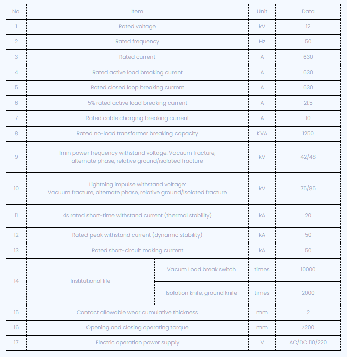 Produk ini memiliki struktur yang ringkas, volume kecil, umur panjang, kapasitas penutupan dan pemecahan yang kuat, dan pengoperasian dan pemeliharaan yang mudah. Sakelar vakum dilengkapi dengan mekanisme yang dioperasikan pegas, yang mengadopsi penyimpanan energi pegas motor listrik (manual lain), dan ada dua jenis metode penutupan: penutupan elektromagnet dan pemisahan dan penutupan manual. Sakelar pemutusan, sakelar vakum dan sakelar pembumian saling terkait satu sama lain (interlocking mekanis) untuk mencegah kesalahan operasi.