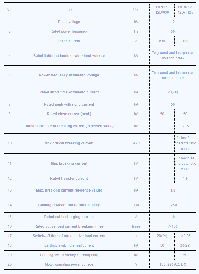 FKN12-12D/630-20 series air-blast load break switch (hereinafter referred to as FKRN12- 12D) and FKRN12-12D series air-blast load break switch and fuse combination apparatus are new series switchgear applies to three- phase electric distribution system of rated 12kV, acting as protecting and control apparatus for transformers, cable and over head wiring.