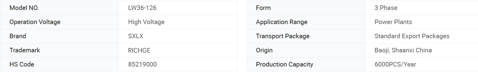 Produk ini menggunakan gas SF6 sebagai media pemadam dan isolasi busur. Ini dilengkapi dengan teknologi pemadam busur yang berenergi mandiri terbaru dan fitur mekanisme yang dioperasikan Spring baru. LW36-126/3150-40 menawarkan umur listrik yang panjang, upaya operasi rendah, kebisingan rendah, dan keandalan tinggi, menjadikannya pilihan yang paling dapat diandalkan untuk area ketinggian tinggi atau sistem daya 132kV. Ini juga dapat menggantikan produk impor dari jenis yang sama.