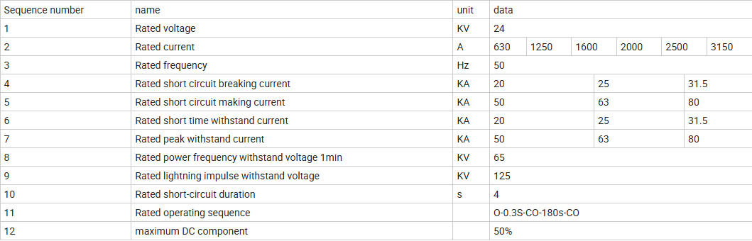 Sirkuit konduktif utama dari pemutus sirkuit vakum jenis ini dengan mekanisme pegas adalah tiang tertanam, yang dapat sangat meningkatkan keandalan isolasi, kinerja mekanis dan pemecahan dan benar-benar menyadari pemeliharaan bebas dan masa pakai mekanik dan listrik yang lebih lama. Pemutus sirkuit vakum jenis ini sesuai dengan standar nasional dan ketentuan standar IEC. Kemampuan mencapai tingkat M-E2-C2.