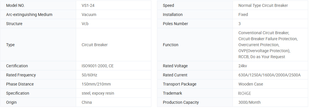Seri VS1-24 dari pemutus sirkuit vakum tegangan tinggi dalam ruangan dengan tiang tertanam adalah tiga frasa A.C.50 Hz peralatan distribusi daya dalam ruangan dengan tegangan pengenal 24 kV. Ini digunakan untuk melindungi dan mengendalikan peralatan listrik di bidang industri dan perusahaan pertambangan, pembangkit listrik dan gardu induk. Sirkuit konduktif utama dari pemutus sirkuit vakum jenis ini dengan mekanisme pegas adalah tiang tertanam, yang dapat sangat meningkatkan keandalan isolasi, kinerja mekanis dan pemecahan dan benar-benar menyadari pemeliharaan bebas dan masa pakai mekanik dan listrik yang lebih lama. Pemutus sirkuit vakum jenis ini sesuai dengan standar nasional dan ketentuan standar IEC. Kemampuan mencapai tingkat M-E2-C2. Produk ini digunakan untuk banyak jenis switchgear seperti KYN28-24 (GZS1) dan dapat diperbaiki.