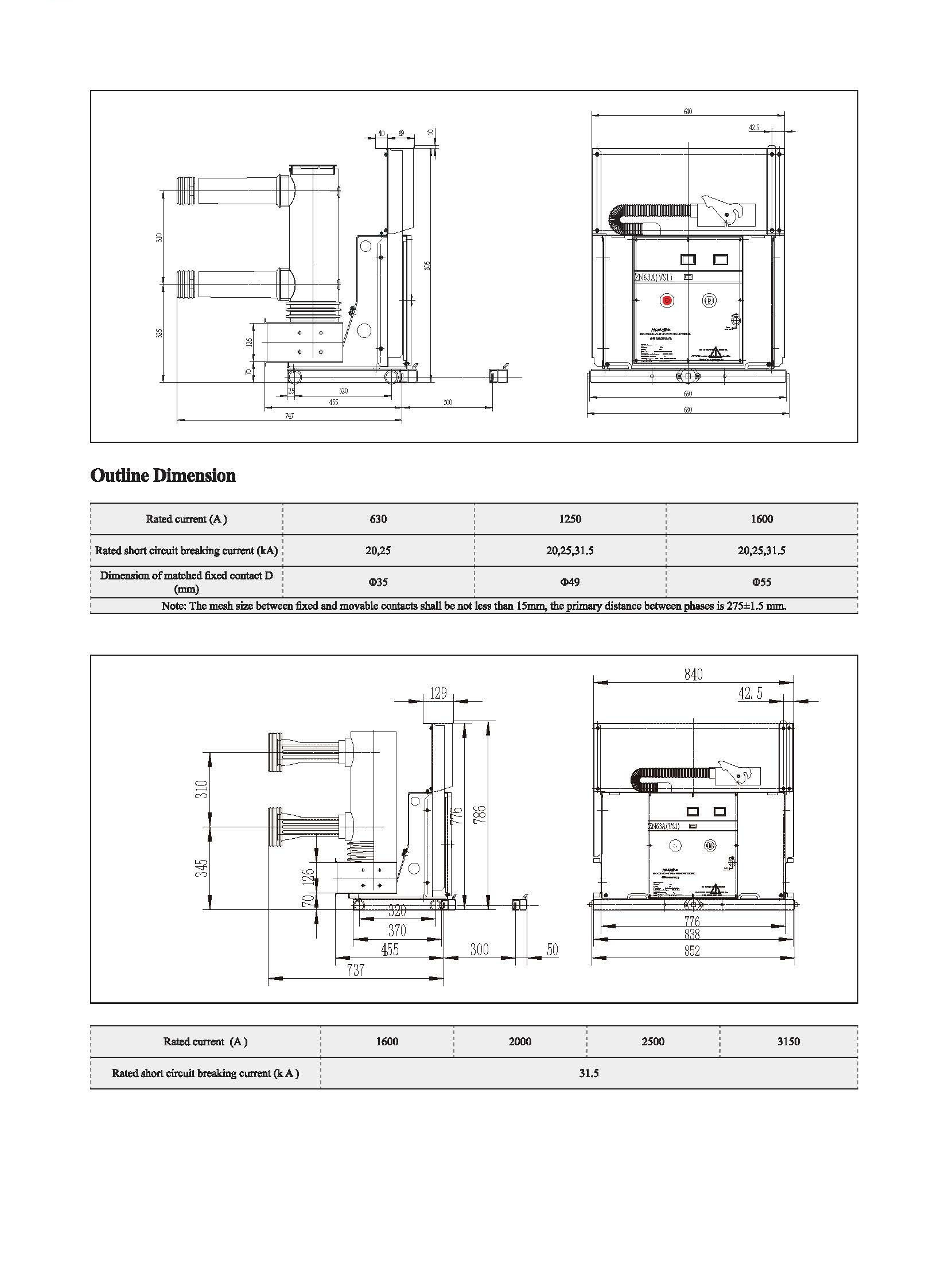 VS1-24 Indoor HV Vacuum Circuit Breaker adalah 3-fase AC 50Hz 24kV peralatan sakelar dalam ruangan