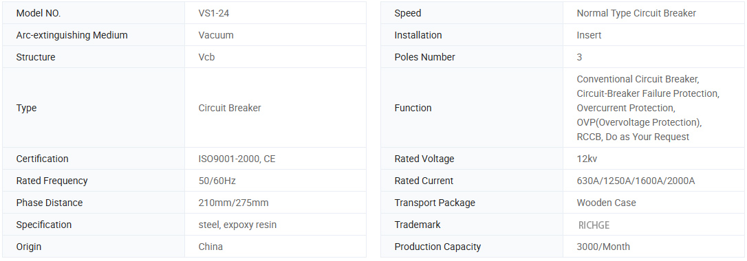 VS1-24 Seri pemutus sirkuit vakum tegangan tinggi dalam ruangan dengan silinder terisolasi umum adalah tiga frase A.C. 50 Hz peralatan distribusi daya dalam ruangan dengan tegangan pengenal 24kV. Ini digunakan untuk melindungi mengendalikan peralatan listrik di bidang industri dan perusahaan pertambangan, pembangkit listrik dan gardu.
