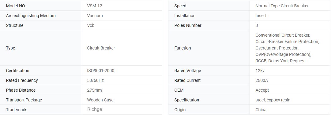 Pemutus sirkuit vakum VSM-12 mengintegrasikan mekanisme operasi magnet permanen dan interrupter vakum dalam konfigurasi depan-dan-balok. Pemutus ini memiliki fitur desain tipe draw-out dengan kolom ARC-Extingingishing yang tetap (tiang penyegelan solid) dan dirancang untuk keandalan dan kinerja yang tinggi di lingkungan listrik yang menuntut.