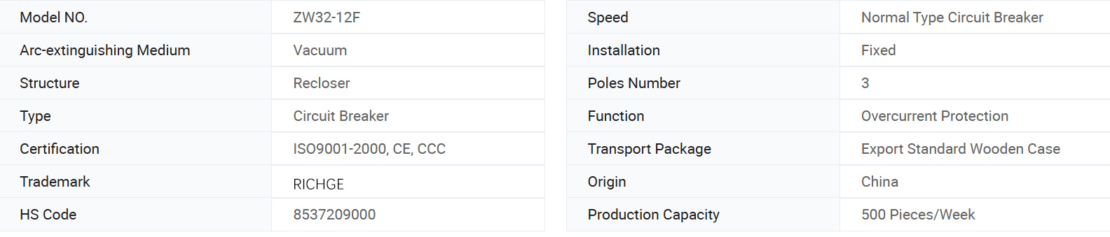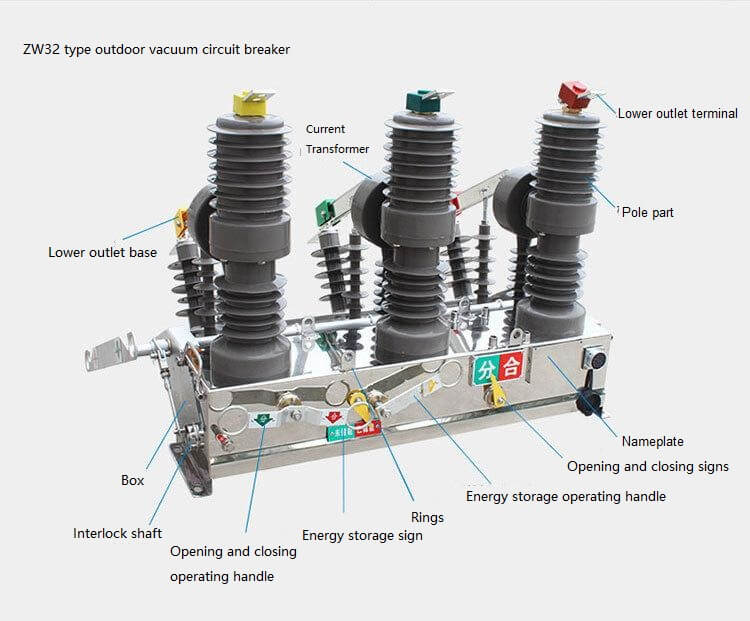 ZW32-12 Outdoor MV Vacuum Circuit Breaker adalah peralatan distribusi luar ruangan dengan tegangan terukur 12kV, tiga fase AC 50Hz. Ini digunakan dalam sistem distribusi perusahaan gardu dan industri dan pertambangan untuk melindungi dan mengendalikan penggunaan. Ini juga digunakan di tempat -tempat jaringan listrik pedesaan dengan operasi yang sering untuk melanggar dan menutup arus beban dan arus beban yang berlebihan dan arus sirkuit pendek dari sistem daya.